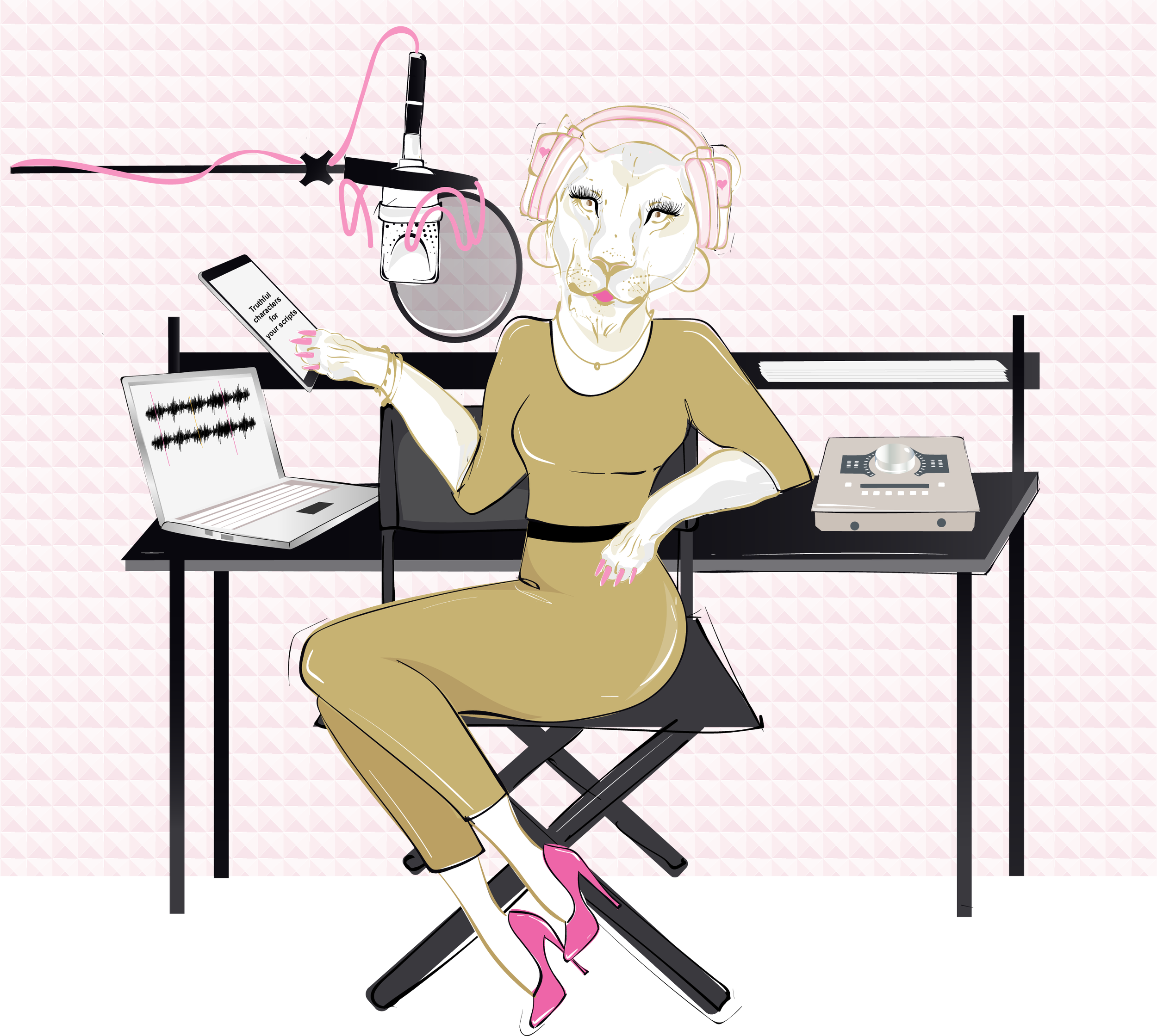 Mia Leonie will produce your scripts in her professional home recording studio that includes: a sound-controlled VocalBooth, Neumann TLM 103 microphone, Universal Audio Apollo Twin X Duo interface, Sennheiser HD 280 Pro monitoring headphones, an Apple MacBook Air and TwistedWave.